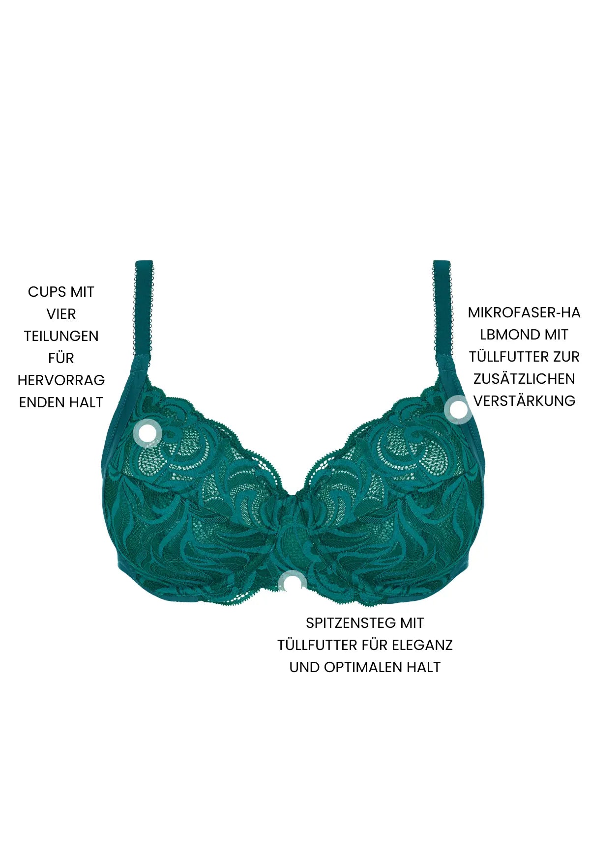 Carla ist eine tägliche Linie, die sowohl schick als auch bequem ist. Sie besteht aus feiner Spitze und weicher, satinierter Mikrofaser für einen zugleich schlichten und raffinierten Look. Lassen Sie sich von diesem edlen Grünton verführen, der Ihrer lingerie Charakter verleiht.