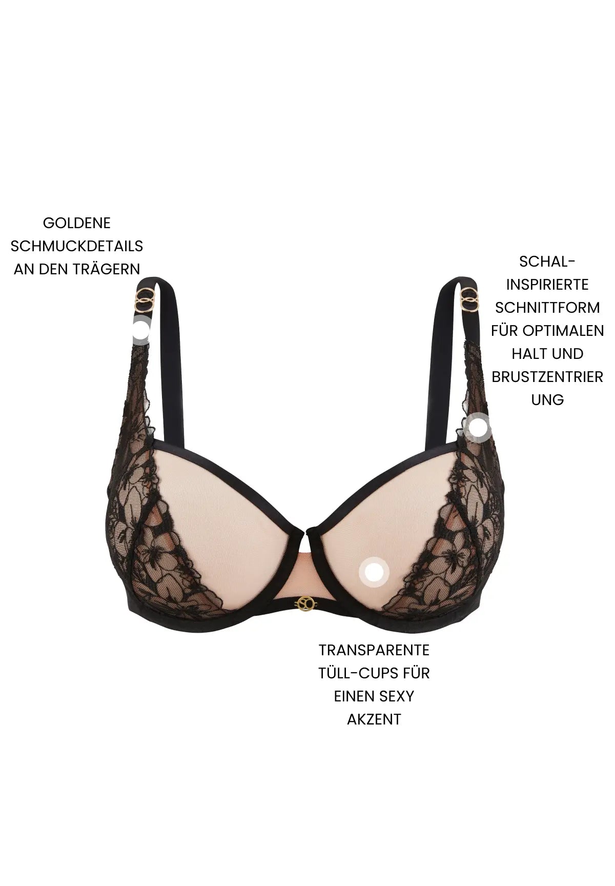 • Goldener SC-Schmuck zwischen den Brüsten und Ringe an den Trägern für eine raffinierte Note