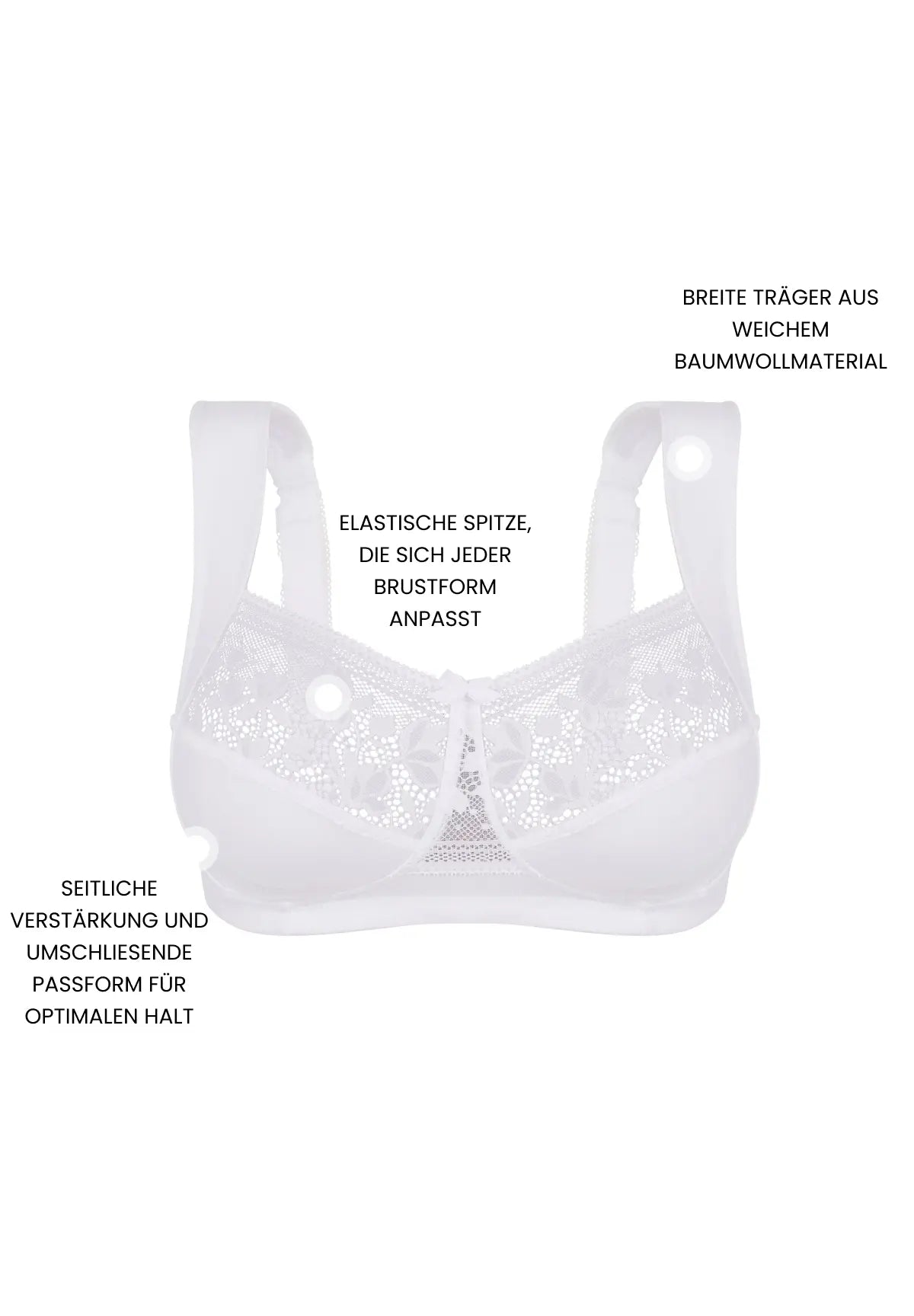 Die Jeanne-Linie bietet Ihnen Weiblichkeit und Eleganz durch die florale Spitze, aber auch unvergleichlichen Komfort dank der ultraweichen Baumwolle, auf die Sie nicht verzichten können.
