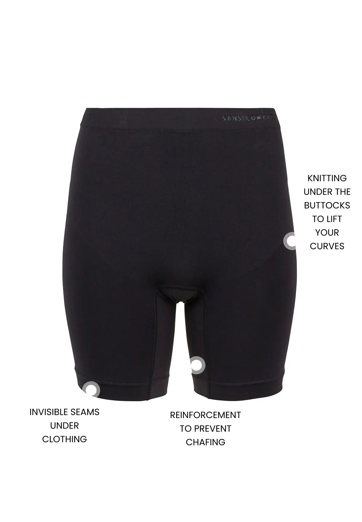 These anti-chafing shorts will quickly become an essential in your wardrobe. Its construction and reinforced fabric on the inside of the thighs help combat discomfort and irritation caused by friction of the thighs.
