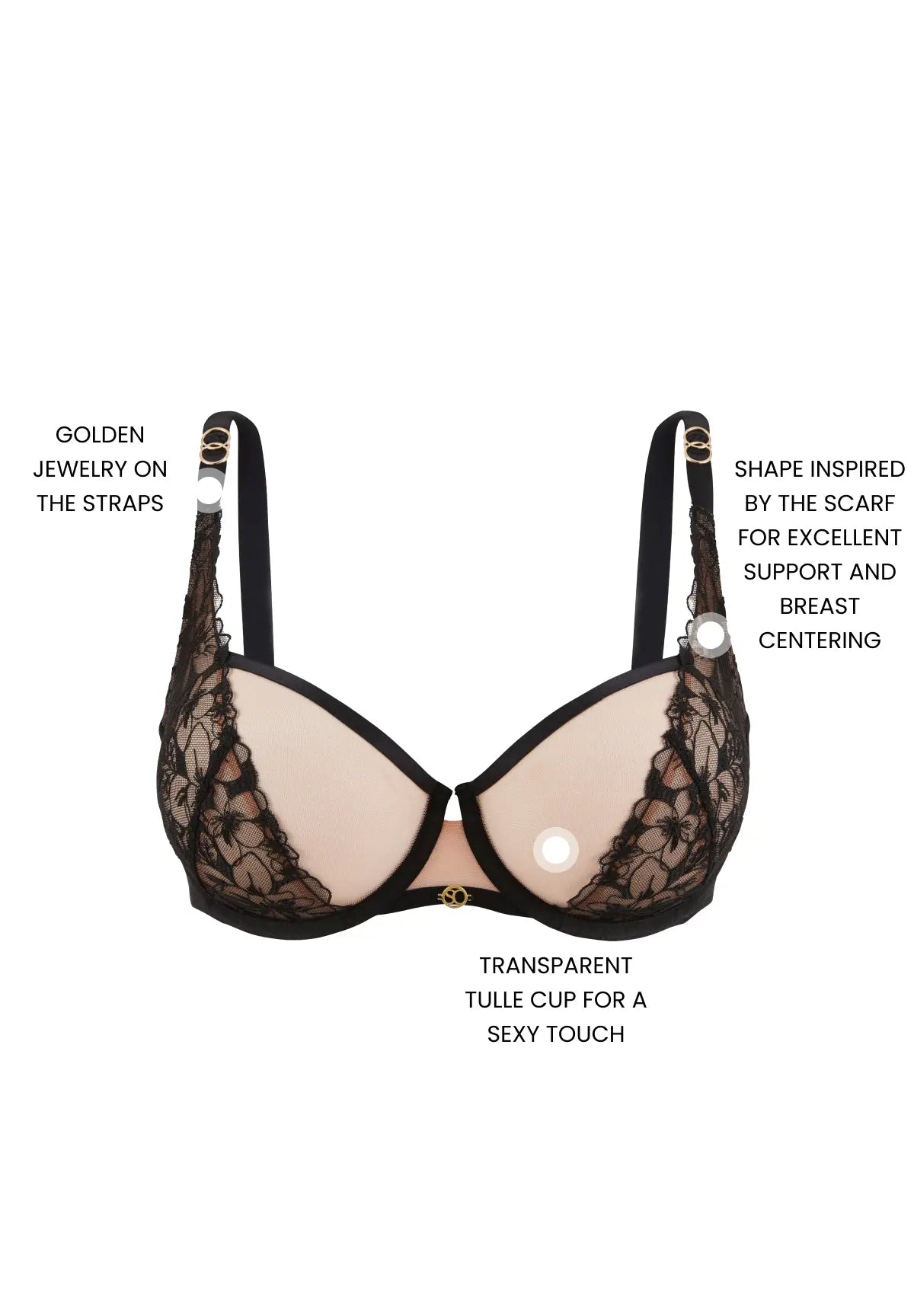 Deva is the line of confident and modern seduction. Its fine and elegant floral embroidery, contrast plays, and golden jewelry give it a sexy and refined look.