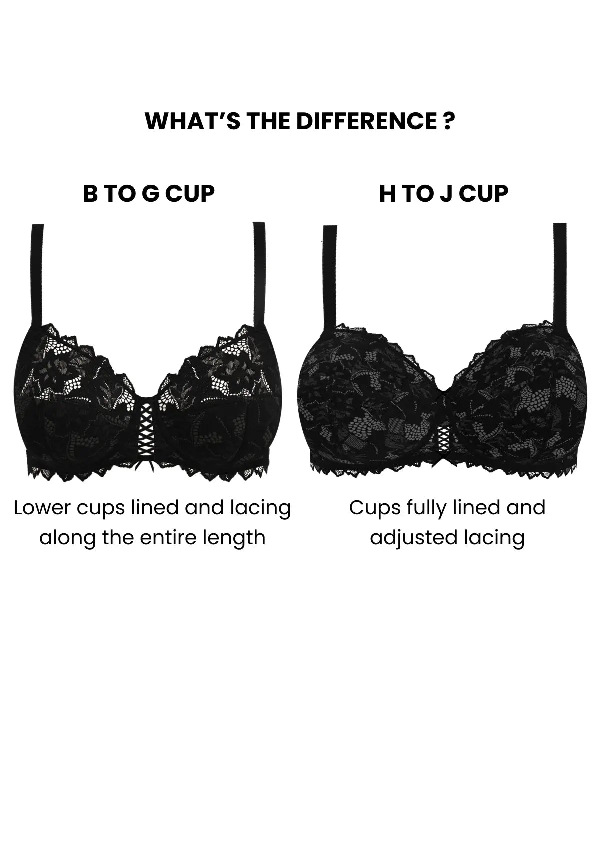 Cups H, I, and J feature a redesigned center gore for support tailored to fuller busts.