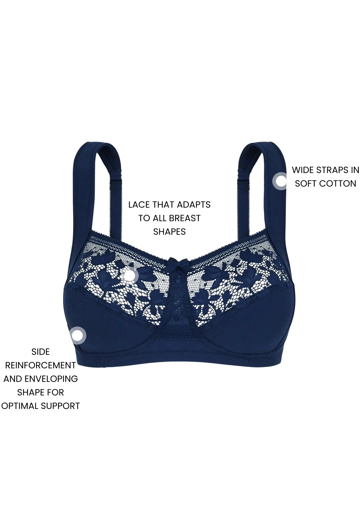 • Delicate floral lace on the cups
