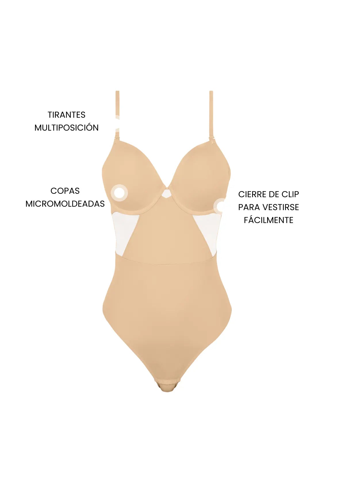 Di sí a los conjuntos sin espalda con este body invisible de la línea Nude Elegance. Gracias a sus tirantes multiposición y a su color discreto, este body sin espalda te ofrece una sujeción óptima, garantizando una excelente invisibilidad bajo tu ropa.