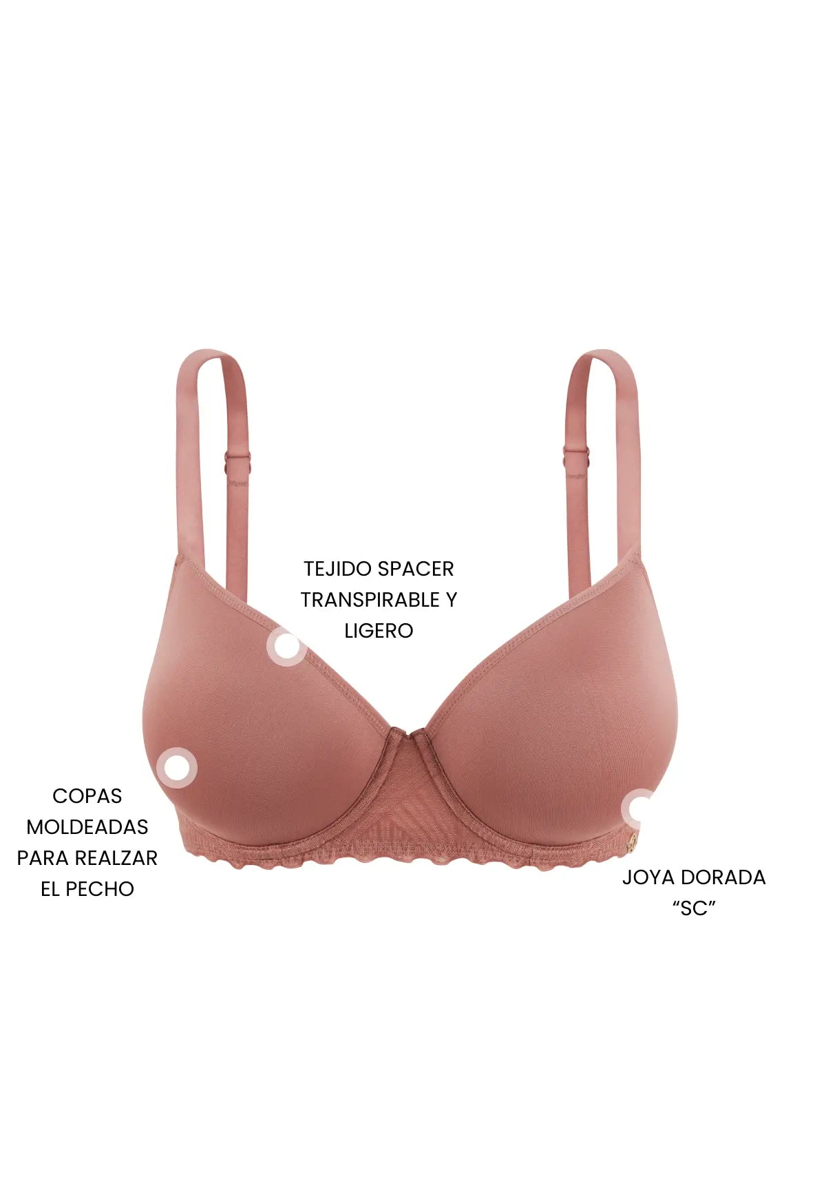 Encaje 79% Poliamida 21% Elastano Copa 90% Poliéster 10% Elastano Forro espalda 88% Poliamida 12% Elastano