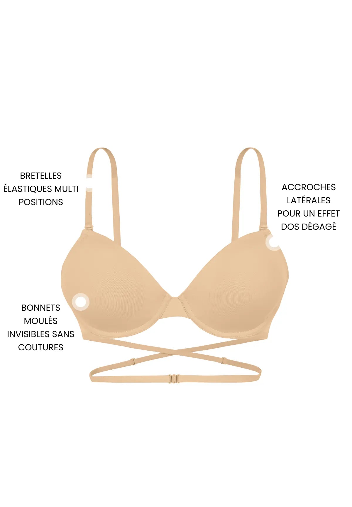 Ajustez les bretelles selon votre choix de tenue pour des bretelles invisibles :