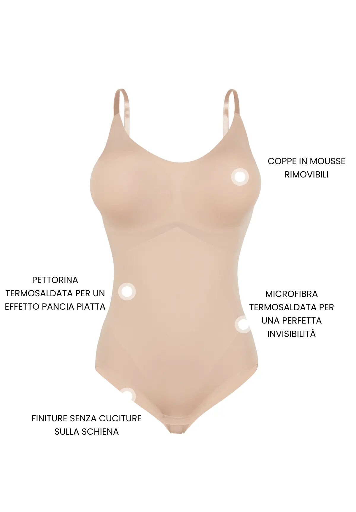 - Finiture termosaldate per un'invisibilità perfetta sotto i vestiti