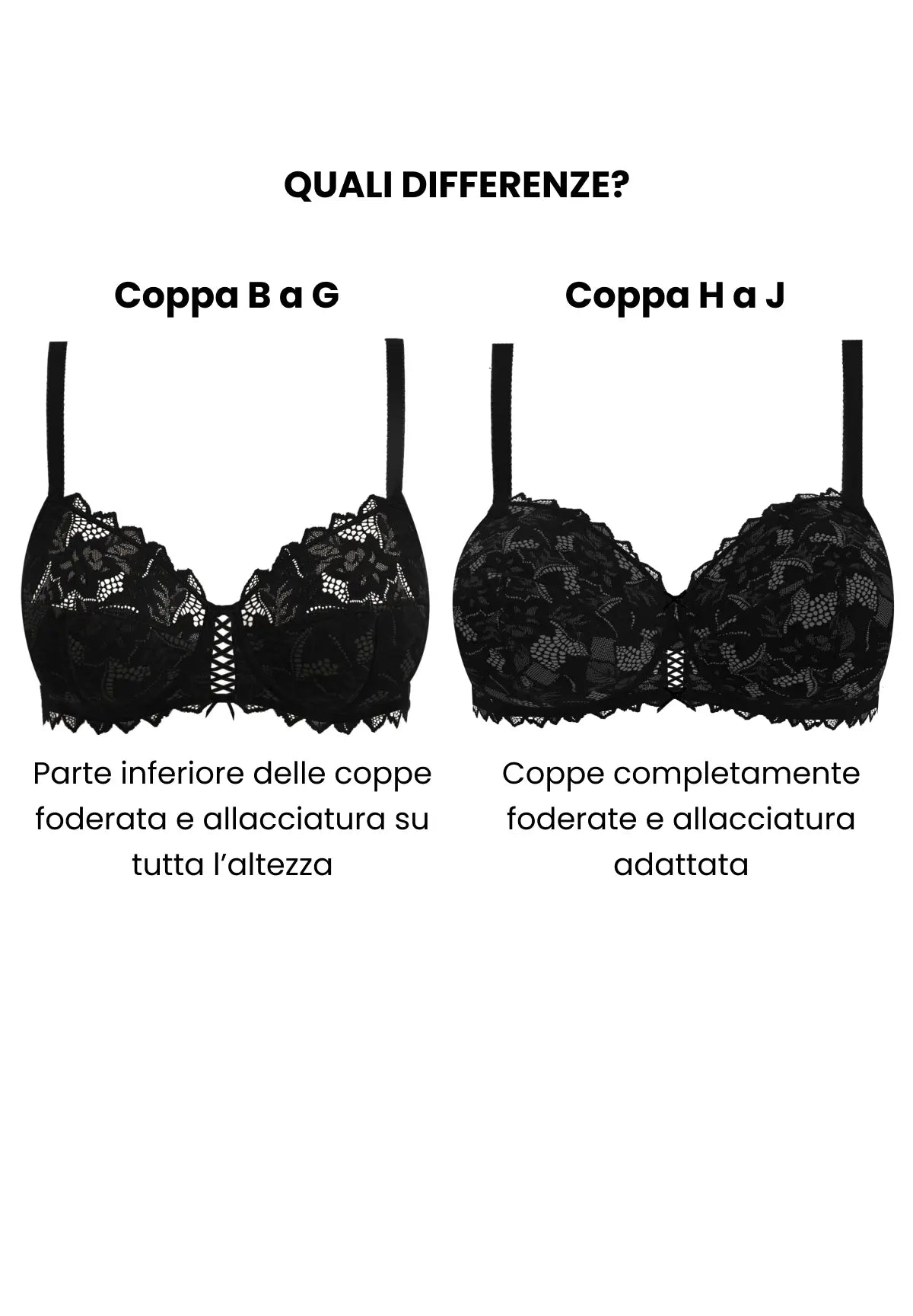 Le coppe H, I e J presentano un centro seno riprogettato per garantire un sostegno adatto ai seni prosperosi.