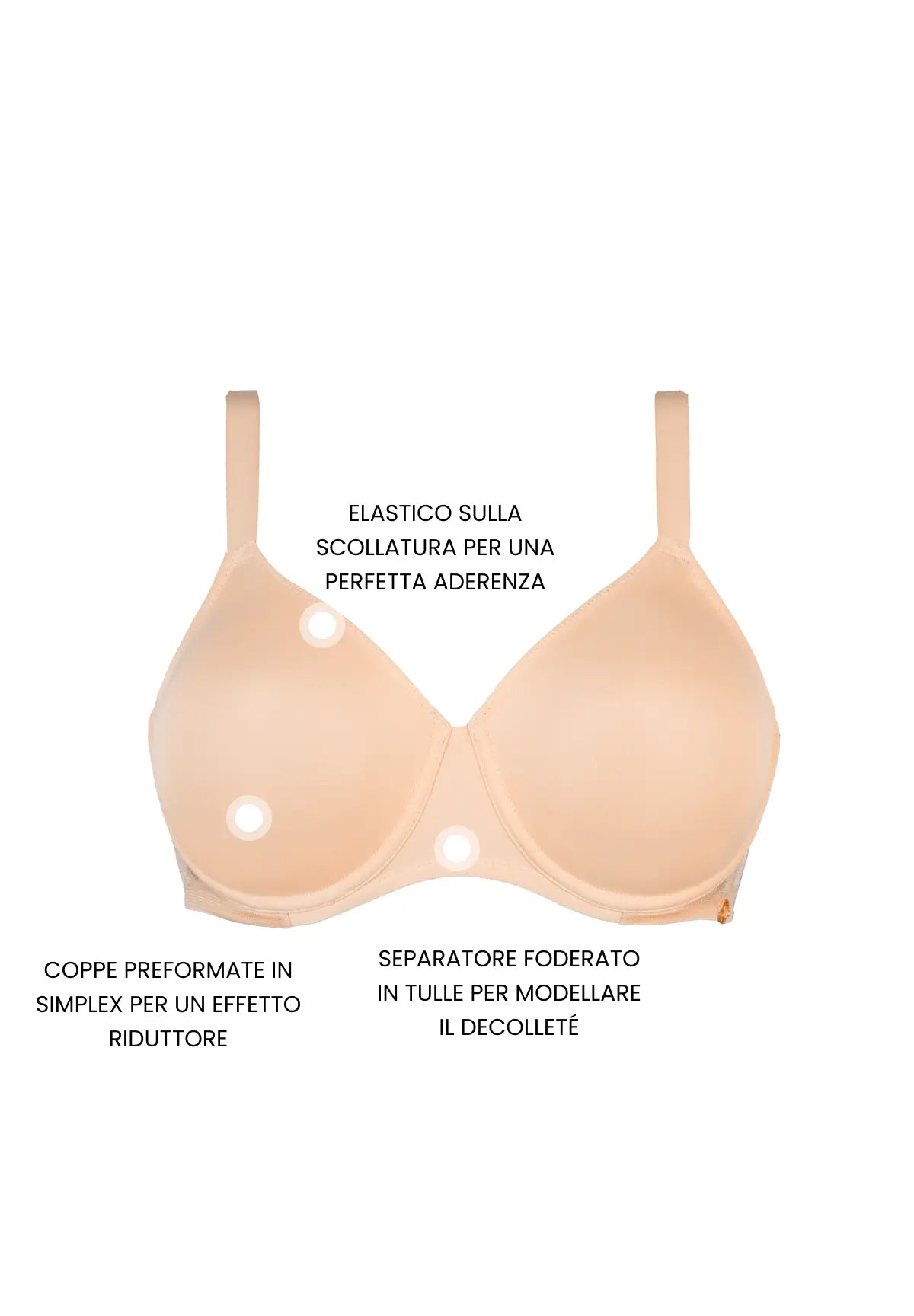 comodità ed eleganza al 100% Perfect Curves scolpisce la lingerie che valorizza i seni geNerosi. Con questo Reggiseno minimizer riduci il volume del tuo seno di una taglia un batter d'occhio.