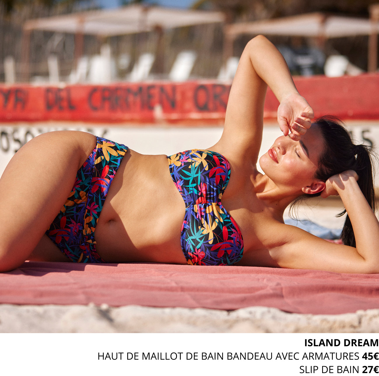 Splendore del mare e curve sublimi sono le parole chiave. Crea la tua silhouette caratteristica con completi audaci e radiosi. Bikini a fascia, reggiseno da bagno a coppa piena con ferretto, slip a vita alta: scatena la tua fantasia e assicurati di goderti un costume da bagno pensato per le forme generose.