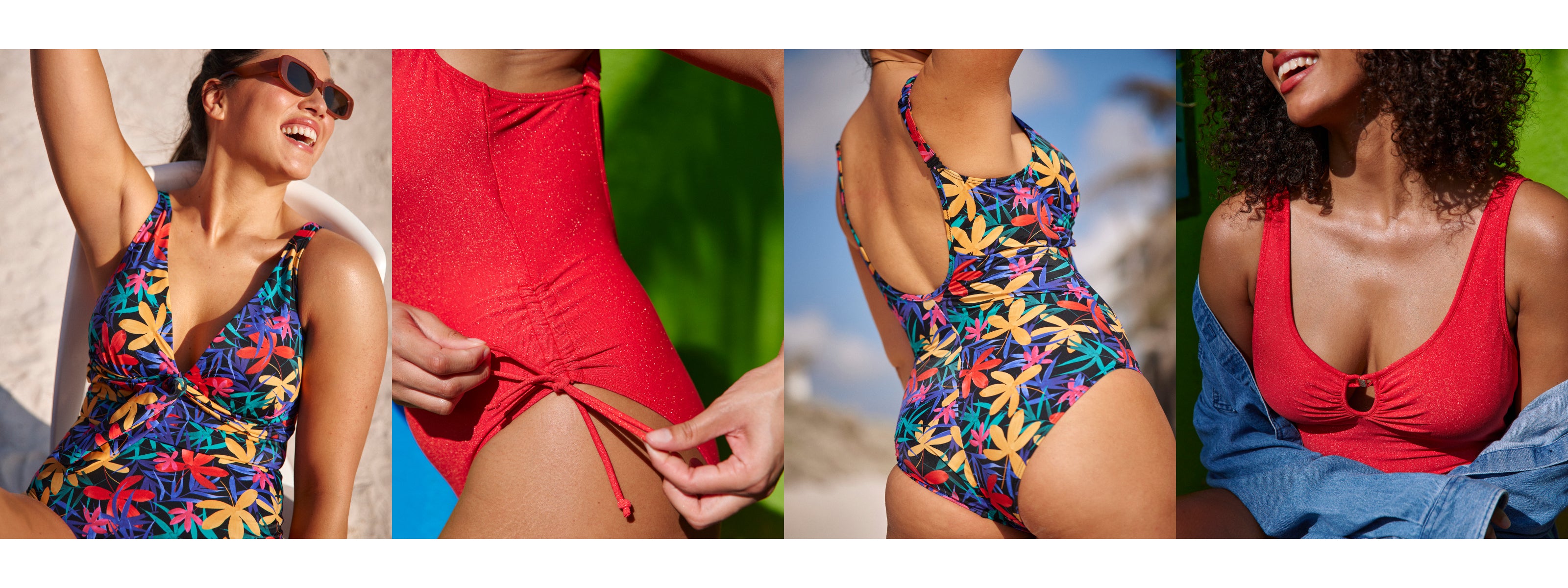 Conchiglie e crostacei hanno ispirato la nostra collezione di costumi da bagno 2024. Colori caldi e vibranti, lucentezza e tocchi dorati esaltano il tuo look e ti offrono una silhouette estiva degna di un idolo della Croisette. Sentiti bella e a tuo agio con un costume da bagno taglie forti che ti offre sostegno e ti valorizza.