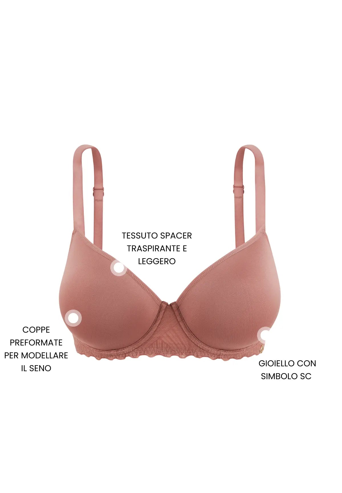 • Coppe sottili e traspiranti che non aggiungono volume al seno