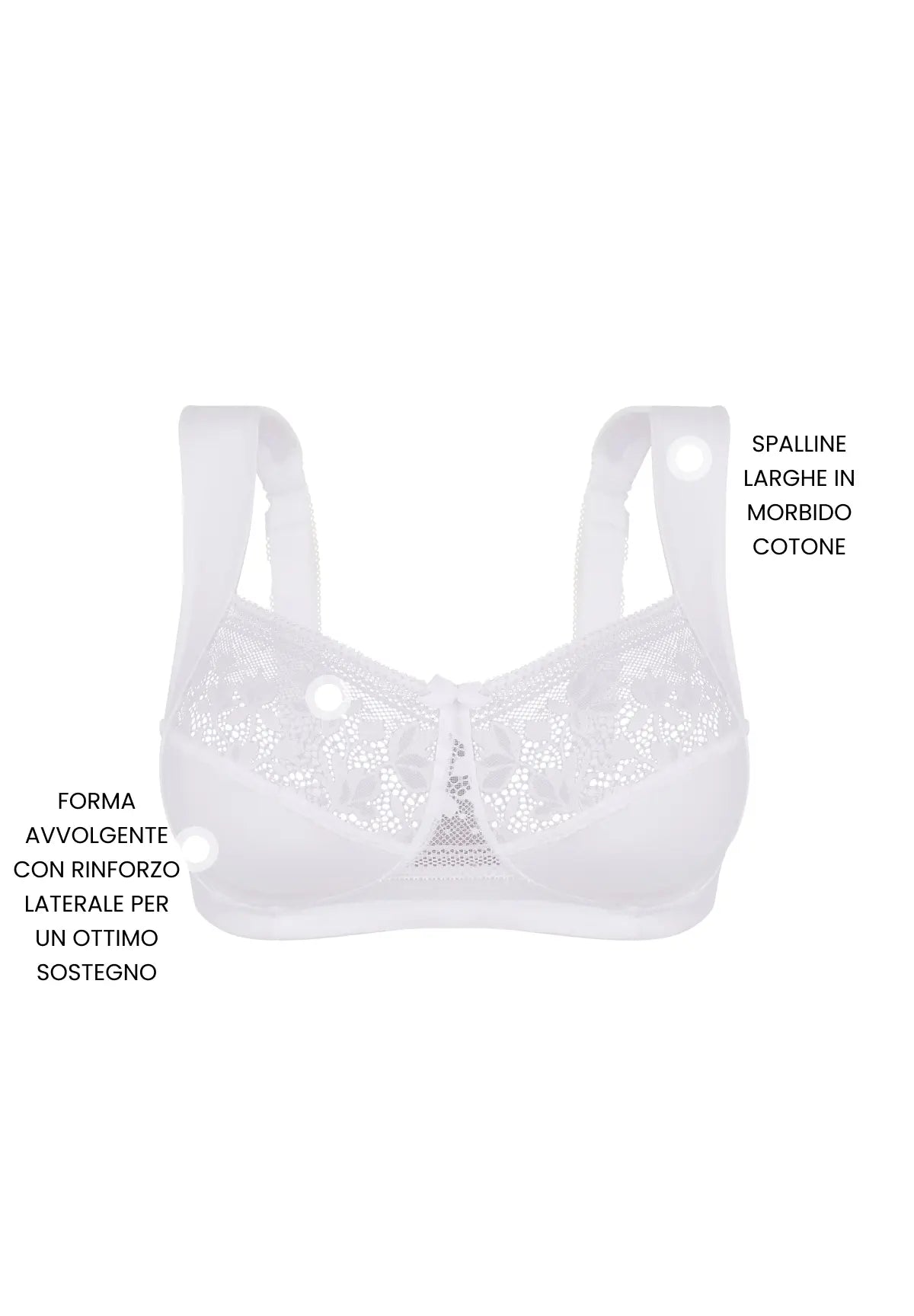 Tessuto 84% Cotone 16% Elastan Pizzo 81% Poliammide 19% Elastan Fodera spalline 100% Poliestere Fodera coppa 100% Cotone