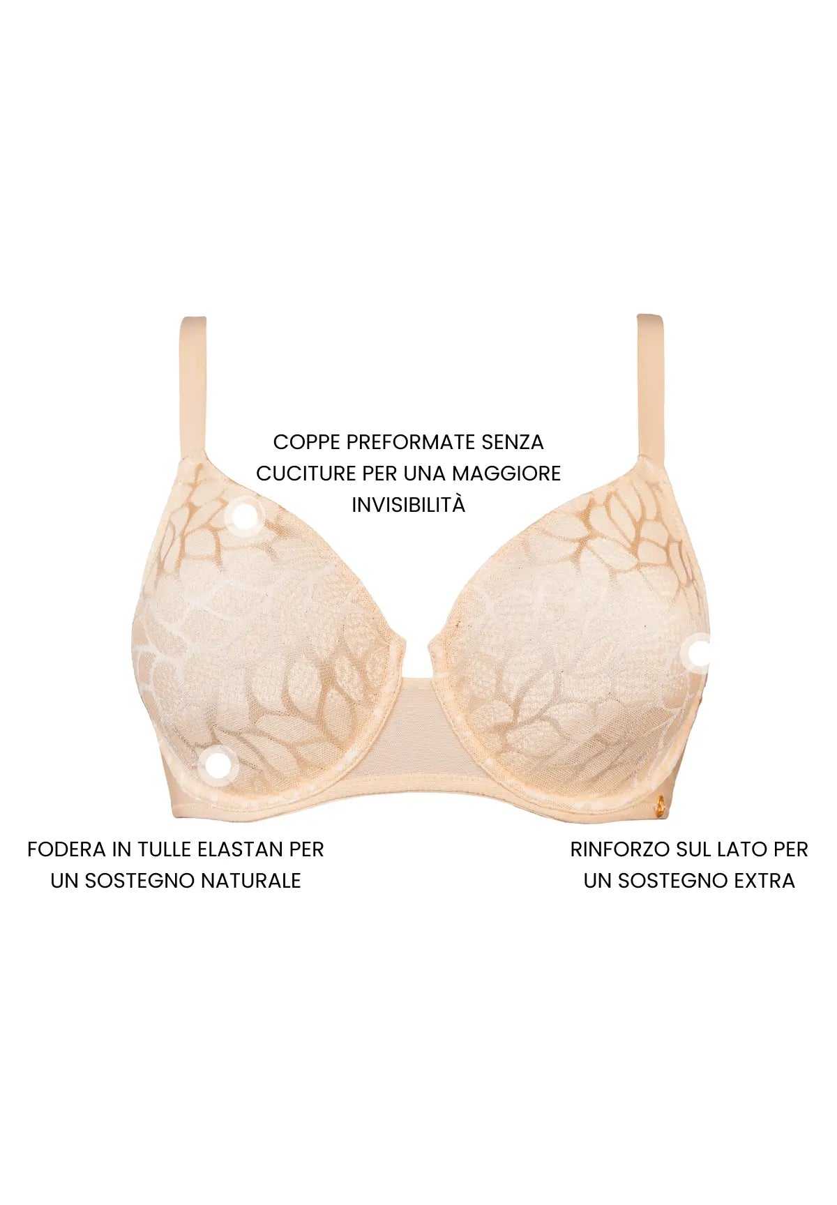 - Coppe preformate molto aderenti senza cuciture visibili