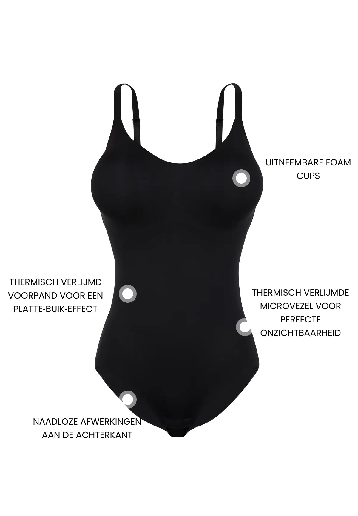 Onze Pure Invisibility-lijn geeft uw vormen een elegante en discrete look. Het tweedehuid-effect valt niet op onder uw kleding en biedt u dag na dag een absoluut luchtig gevoel. Deze zwarte versie maakt het een tijdloze, elegante body die zichtbaar gedragen kan worden met een eenvoudige broek of onder uw outfits.