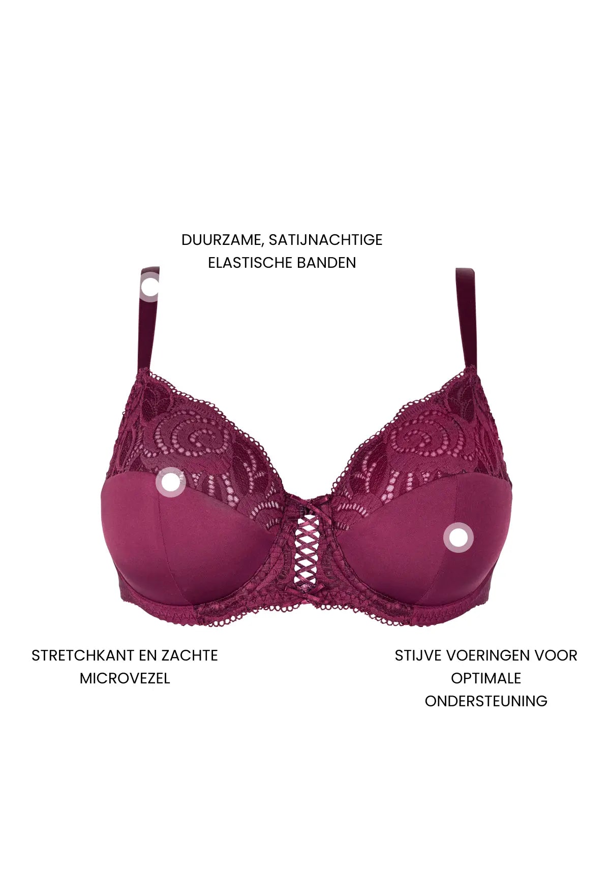 • Verfijnd kant aan de bovenkant van de cup