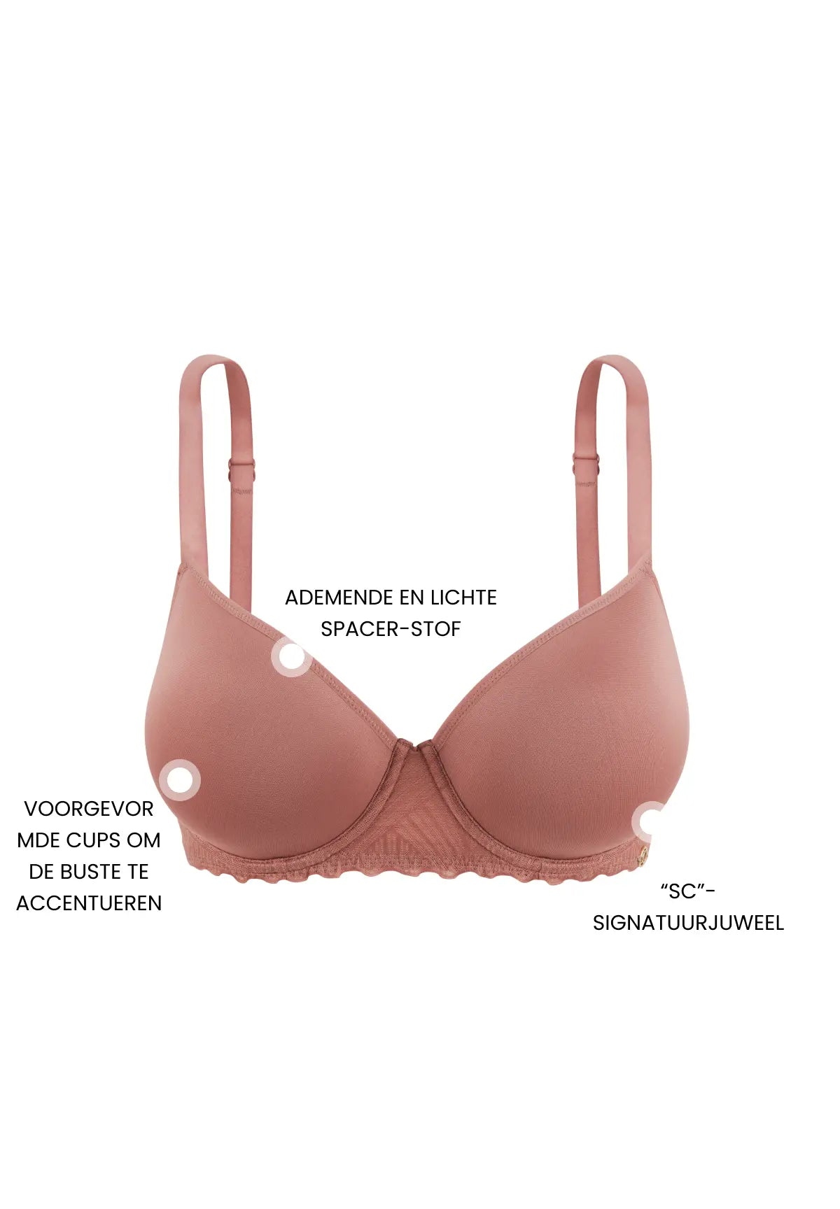 • Dunne en ademende cups die geen extra volume aan de borst toevoegen