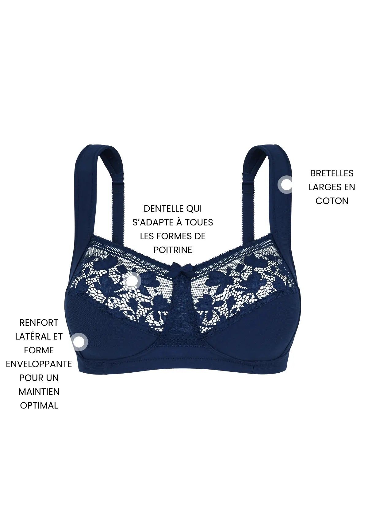 La ligne Jeanne vous offre de la féminité et de l'élégance à travers sa dentelle florale, mais aussi un confort inégalé grâce à son coton ultra doux dont vous ne pourrez plus vous passer.